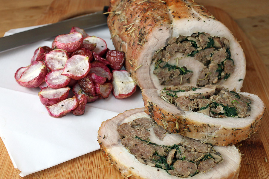 This makes 5 total servings of Stuffed Pork Tenderloin with Roasted Radish. Each serving comes out to be 678 Calories, 47.6g Fats, 4.2g Net Carbs, and 53.2g Protein.